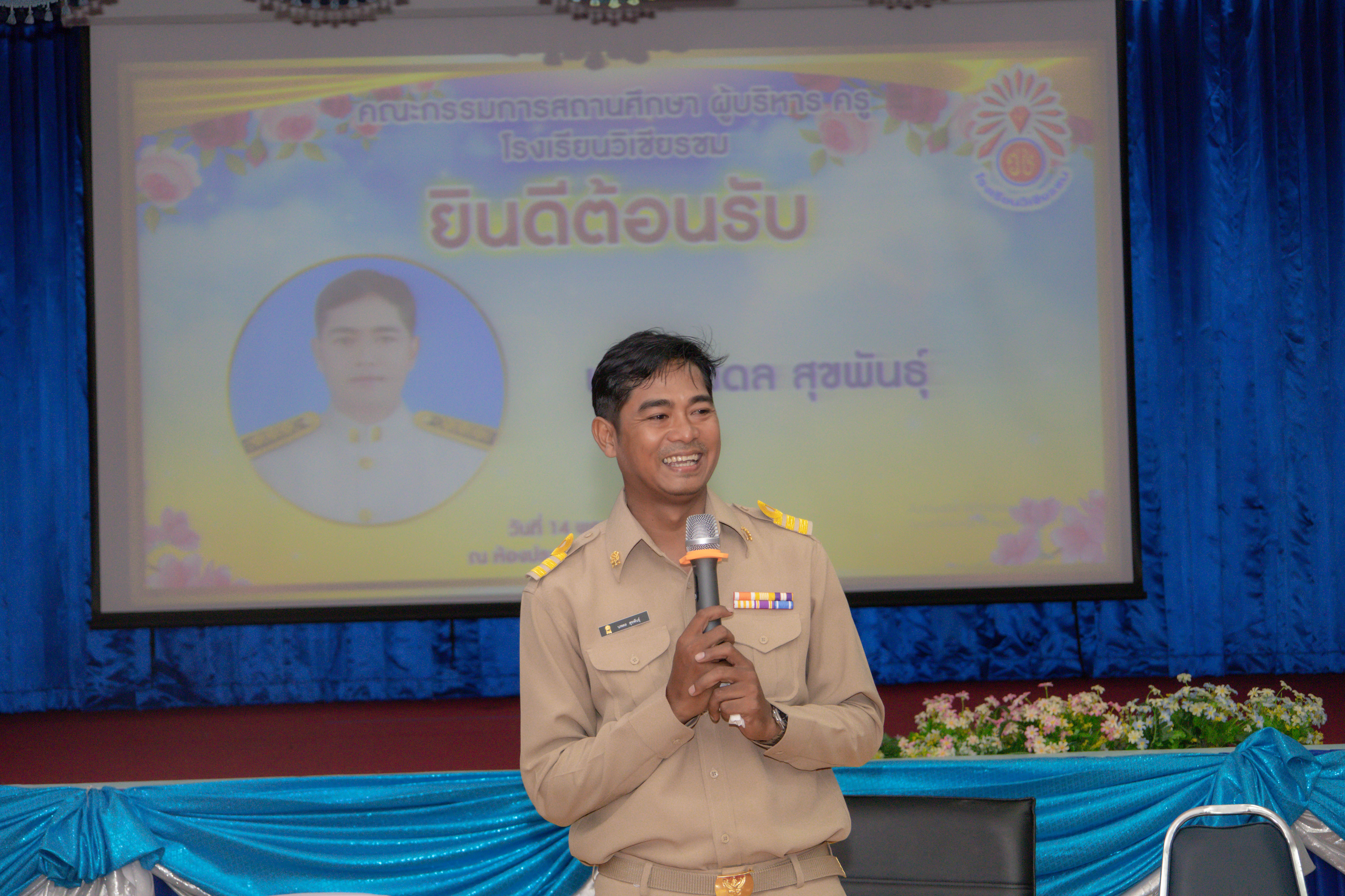 นายไพฑูรย์ ทองมณี ผู้อำนวยการโรงเรียนวิเชียรชม พร้อมด้วยหัวหน้ากลุ่มงาน และหัวหน้ากลุ่มชั้น ของโรงเรียนวิเชียรชม ร่วมต้อนรับผู้บริหาร และคณะครู ที่มาส่งข้าราชการครูบรรจุใหม่ นายนพดล สุขพันธ์ุ วิชาเอกพลศึกษา จากโรงเรียนวัดศาลาหลวงล่าง อ. ระโนด จ. สงขลา ณ ห้องประชุมวิเชียรคีรี โรงเรียนวิเชียรชม